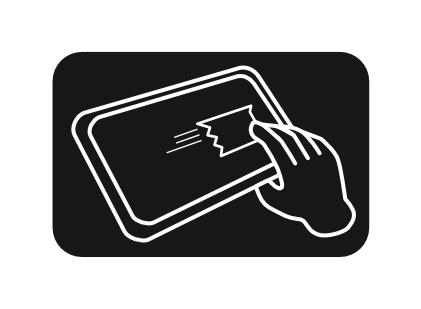 Wipe the screen with a wet tissue, then clean it with a dust-removal cloth.